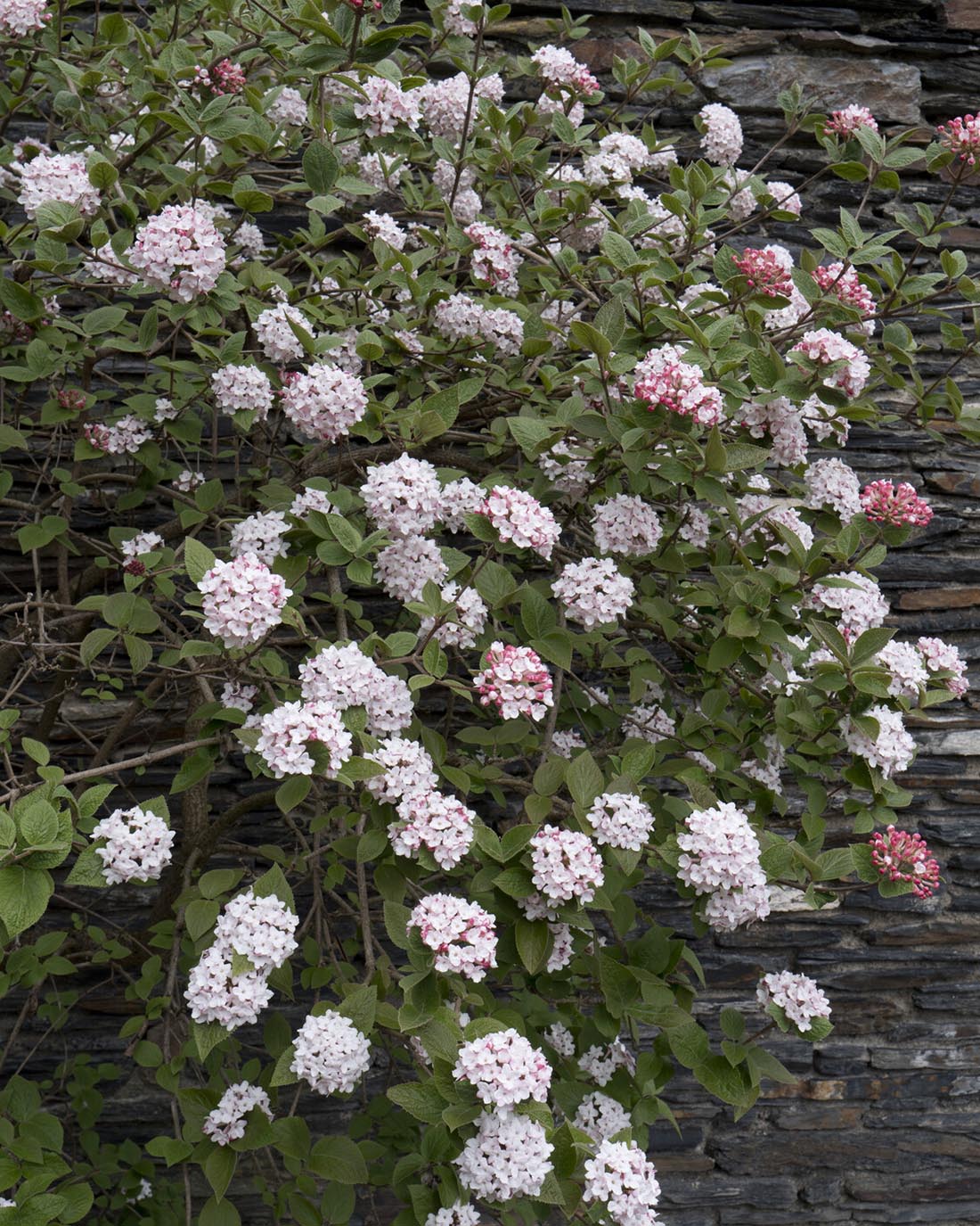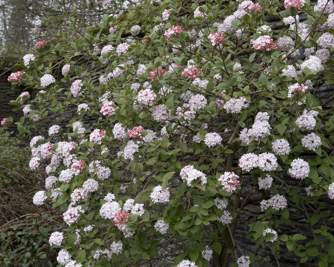 Viburnum 'Compactum' is a quietly dependable arrowwood, prized for its neat proportions and unflappable nature. Slow-growing and naturally well behaved, it forms a dense, rounded shrub reaching around 1.2 metres, making Viburnum carlesii 'Compactum' an excellent choice for smaller gardens, mixed borders or low hedging where structure matters. The oval, dark green leaves have softly irregular toothed edges, with pale greyish undersides that catch the light on breezy days. As spring unfolds, dome-shaped clusters of pink-tinged buds appear, opening into gently fragrant, tubular white flowers that feel generous without being showy. Viburnum 'Compactum' has an easy elegance that sits comfortably alongside perennials, grasses and spring bulbs, lending a sense of calm order to planting schemes.