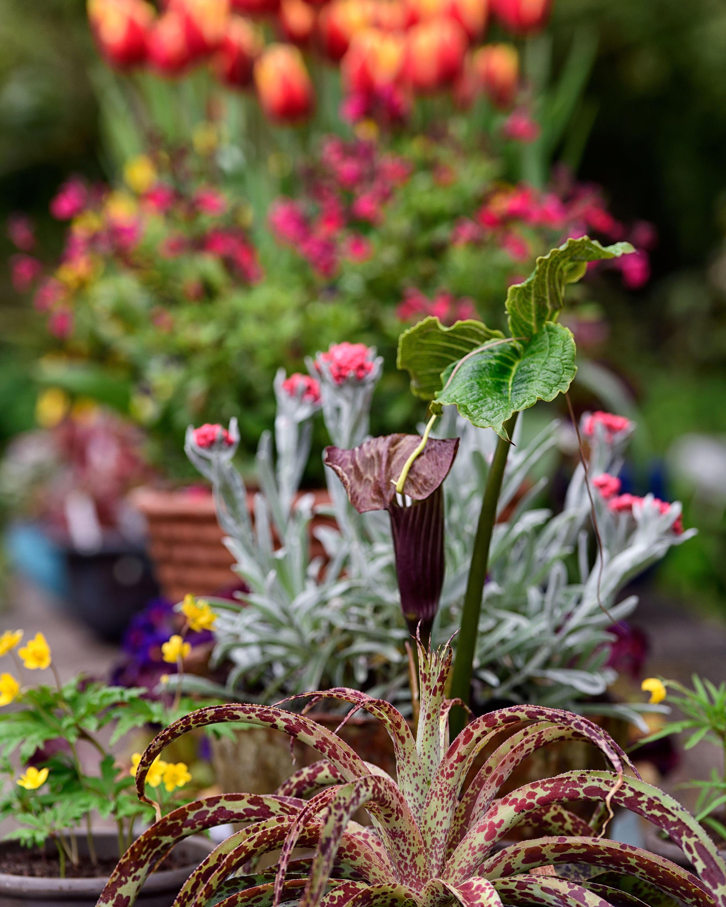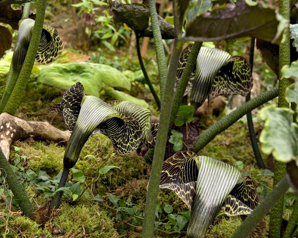 In a shaded corner of the garden, Arisaema griffithii is both mysterious and mesmerising. It thrives in humus-rich, moisture-retentive soil and rewards patience with a spectacularly sculptural presence. Perfect for woodland gardens or collectors of the unusual, Griffith's cobra lily pairs beautifully with ferns, trilliums and other shade lovers, creating a scene that feels half botanical, half mythical. To encounter Arisaema griffithii in flower is to witness a moment of quiet theatre—nature’s own work of art.