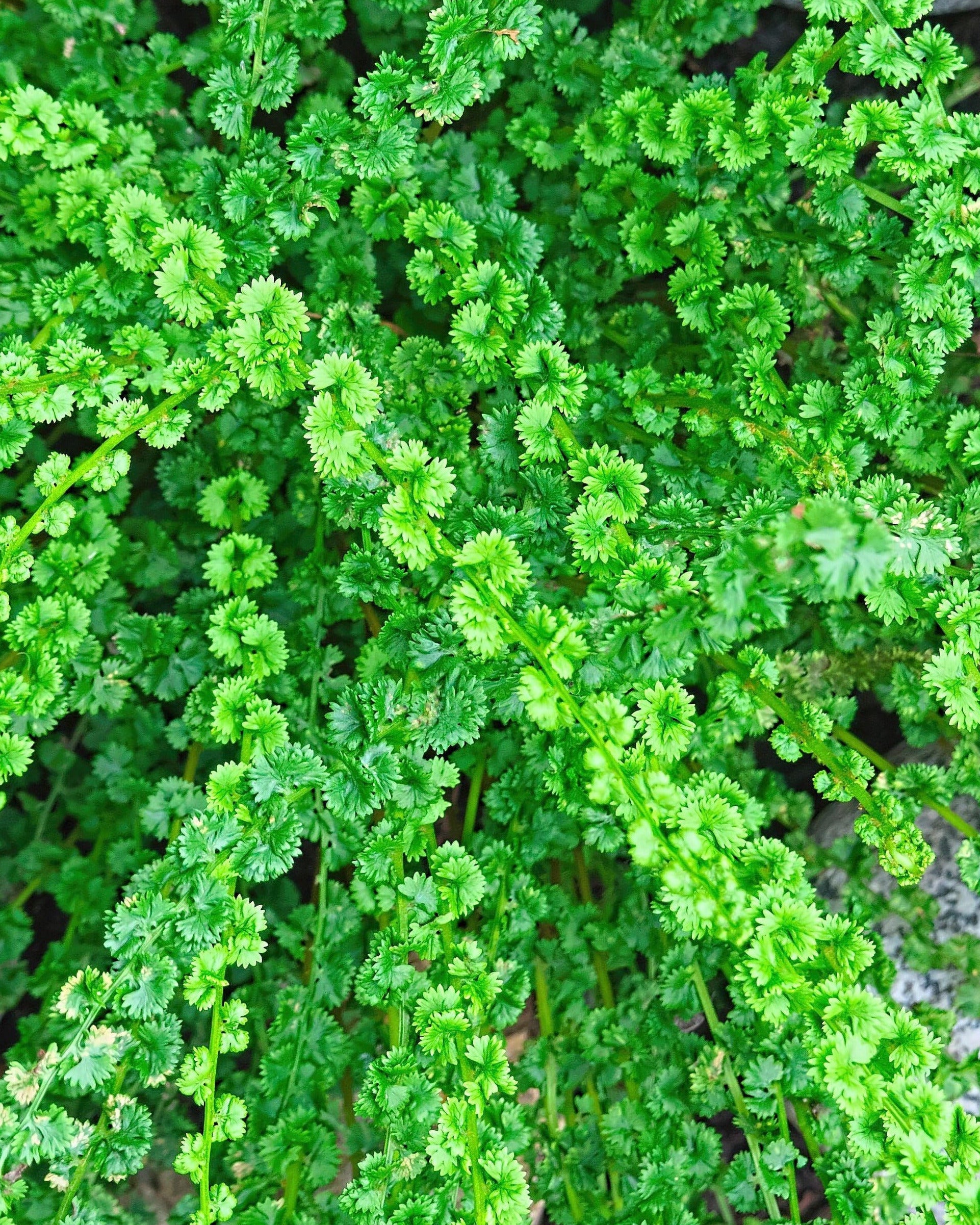 Athyrium 'Frizelliae' is not your ordinary fern—it’s the one that turned up to the woodland party wearing pearls. Better known as the tatting fern, this delightfully quirky perennial stands out with its slender, arching fronds, each lined with perfectly rounded lobes that look like a string of green beads. The effect is both intricate and whimsical, adding texture and charm to shady borders, rock gardens, or containers. Reaching about 20cm tall, Athyrium 'Frizelliae' forms a compact clump that’s ideal for softening the edges of paths or providing an elegant contrast to broad-leaved plants such as hostas or brunneras.