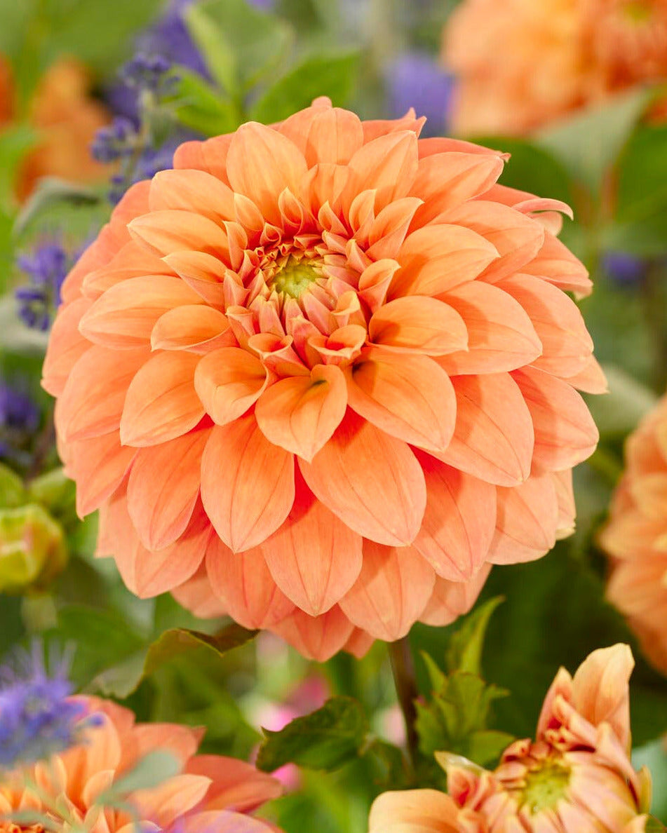 Dahlia 'Garden Jubilee' is a variety that brings instant warmth and celebration to the garden, as though a burst of late-summer sunshine has settled among the borders. Its blooms are richly coloured in glowing shades of orange, with a beautiful depth that feels both energetic and reassuring. Each flower is neatly rounded and generously filled, creating a pleasing, full silhouette. The colour begins with a bright, lively orange at the base of the petals, deepening gradually towards the outer edges into a more intense, burnished tone. This subtle transition gives Dahlia 'Garden Jubilee' a sense of movement and vitality, catching the light beautifully from morning to evening. It is a dahlia that lifts the mood instantly, working particularly well alongside warm-toned grasses, soft yellows, or dusky reds. Few plants deliver such consistent cheer as Dahlia 'Garden Jubilee'.