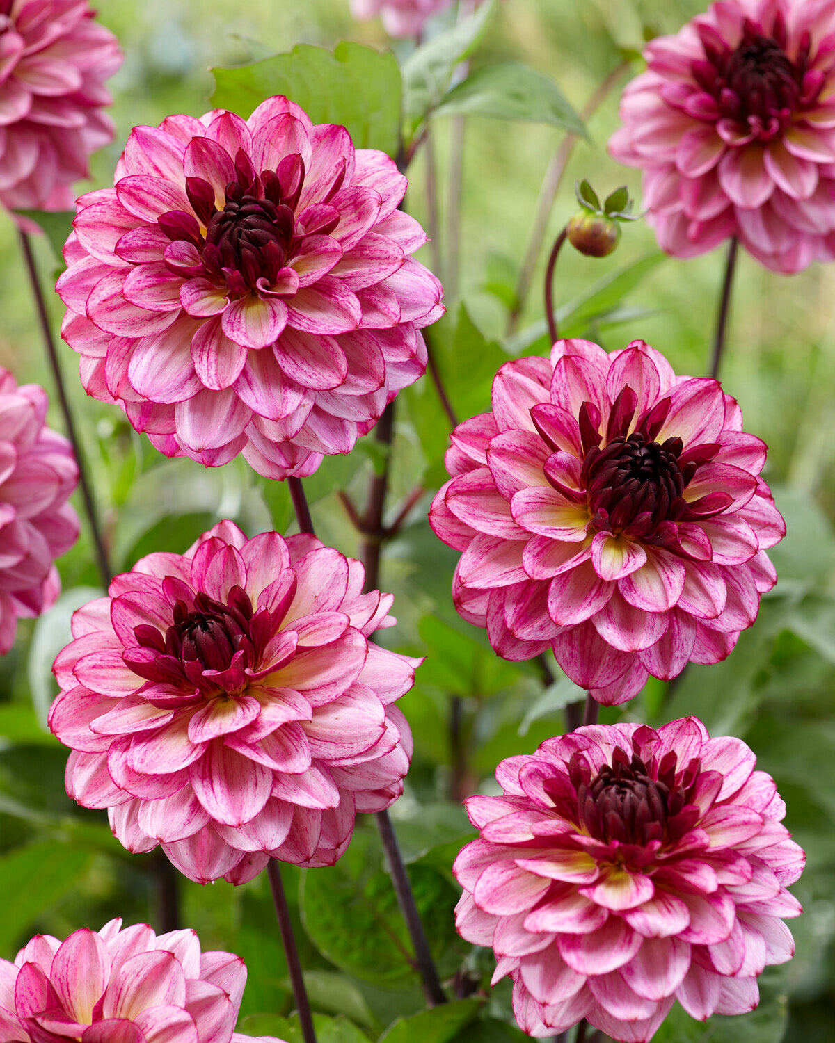 With its pretty blend of white, lilac, and rose petals surrounding a deep burgundy centre, Dahlia 'Muchacha' is pure sophistication with a hint of mischief. The flowers are neat, rounded, and abundantly produced, their cool yet romantic tones lending themselves beautifully to soft planting schemes. Dahlia 'Muchacha' is a dahlia that whispers rather than shouts—but still holds your gaze.