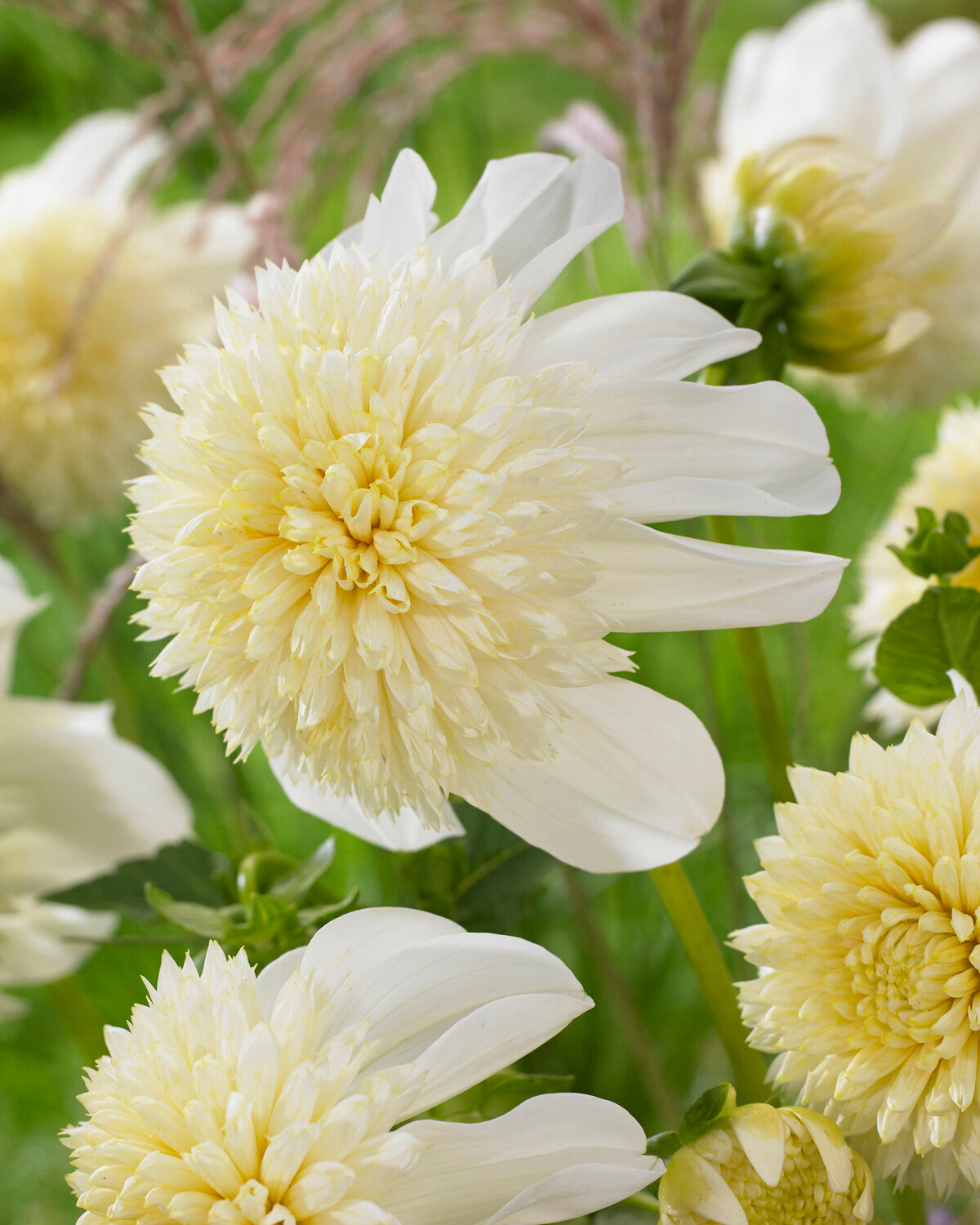 Deadheading encourages prolonged blooming whilst staking supports developing stems. An exemplary choice for gardeners seeking elegant restraint and dependable performance. Compact and free-flowering, Dahlia 'Platinum Blonde' thrives in sunny spots and well-drained soil. Its sophisticated tones work perfectly in neutral or pastel planting schemes, and its long stems make it an excellent choice for cutting. With poise, charm, and endless grace, Dahlia 'Platinum Blonde' is the floral equivalent of quiet confidence.