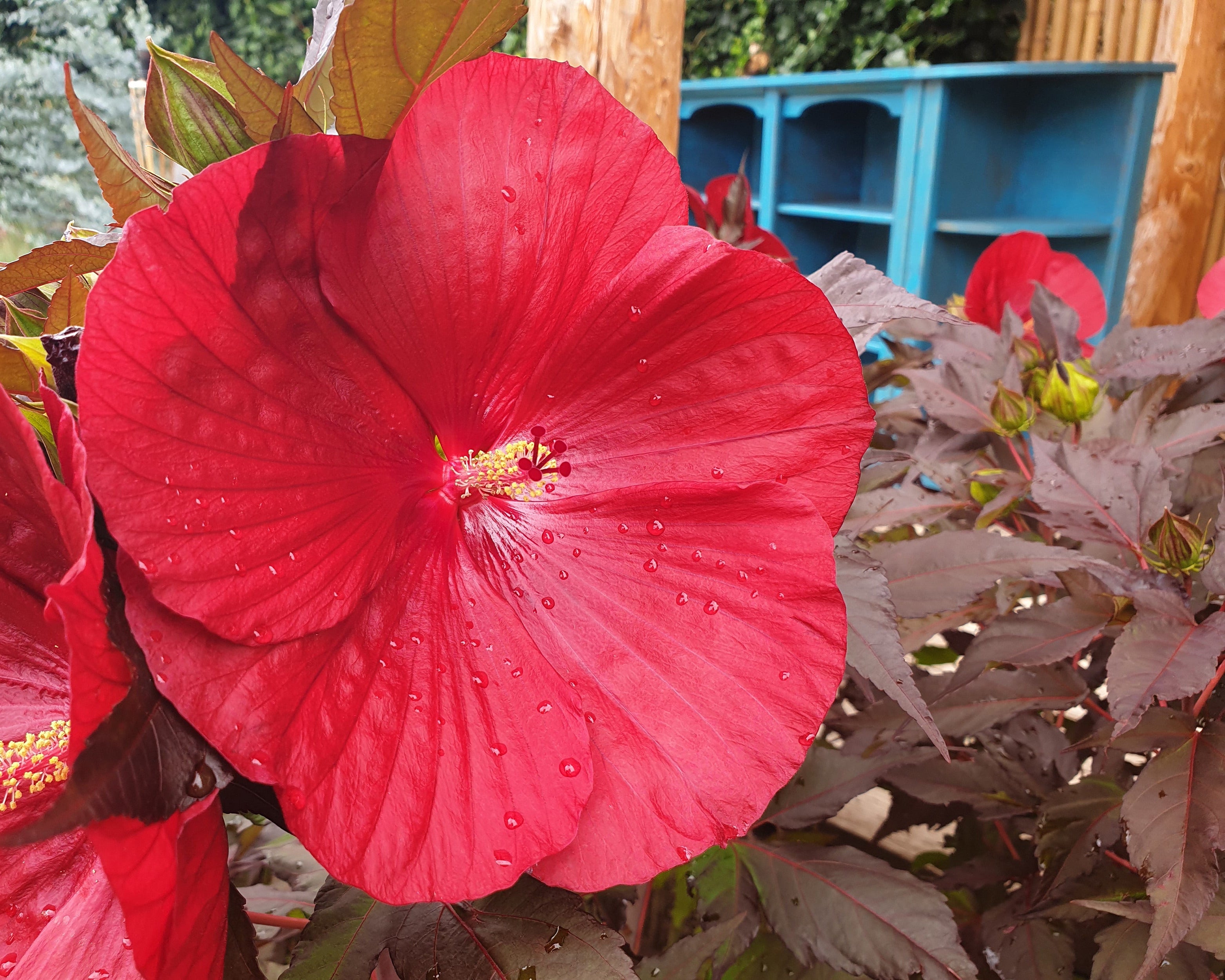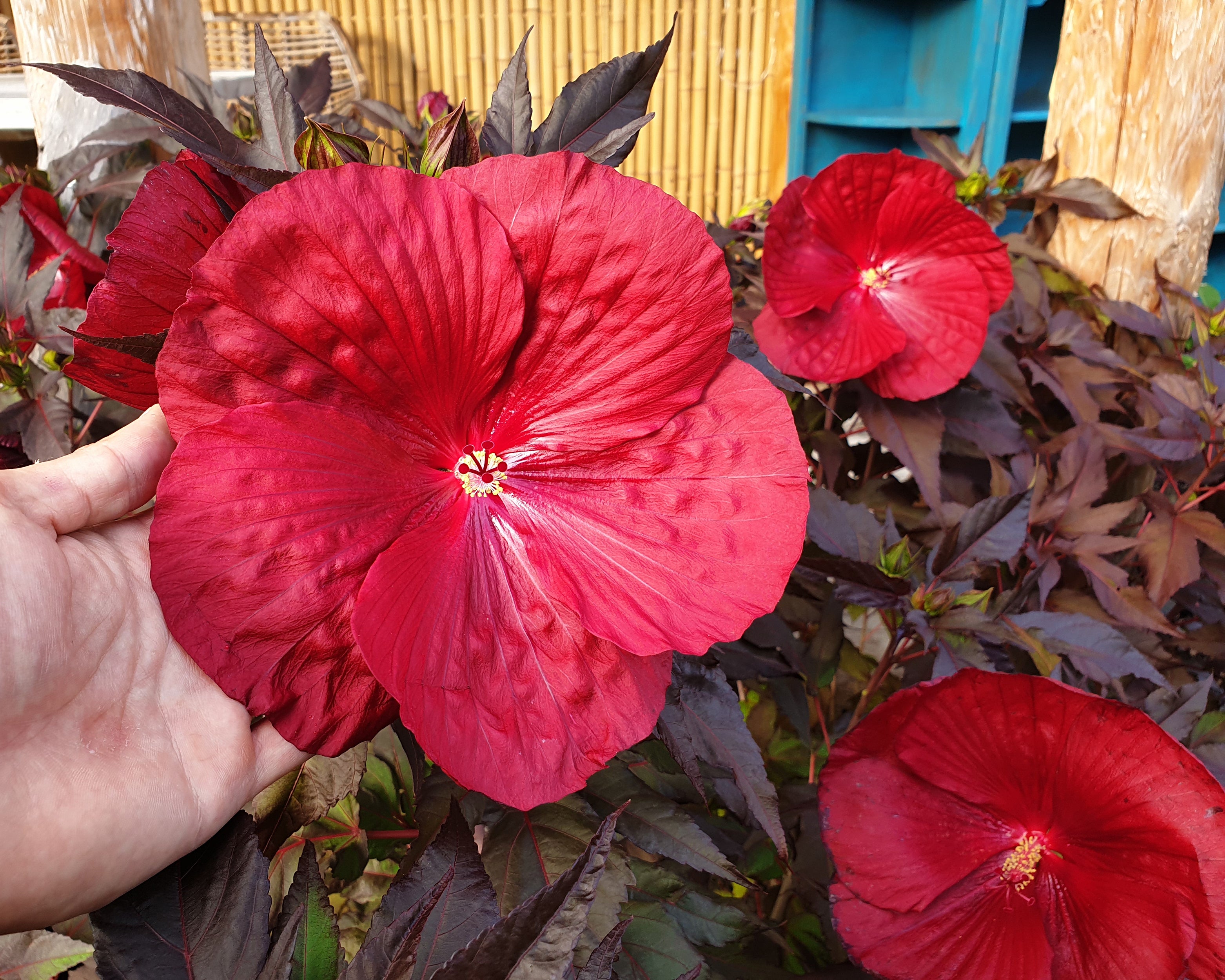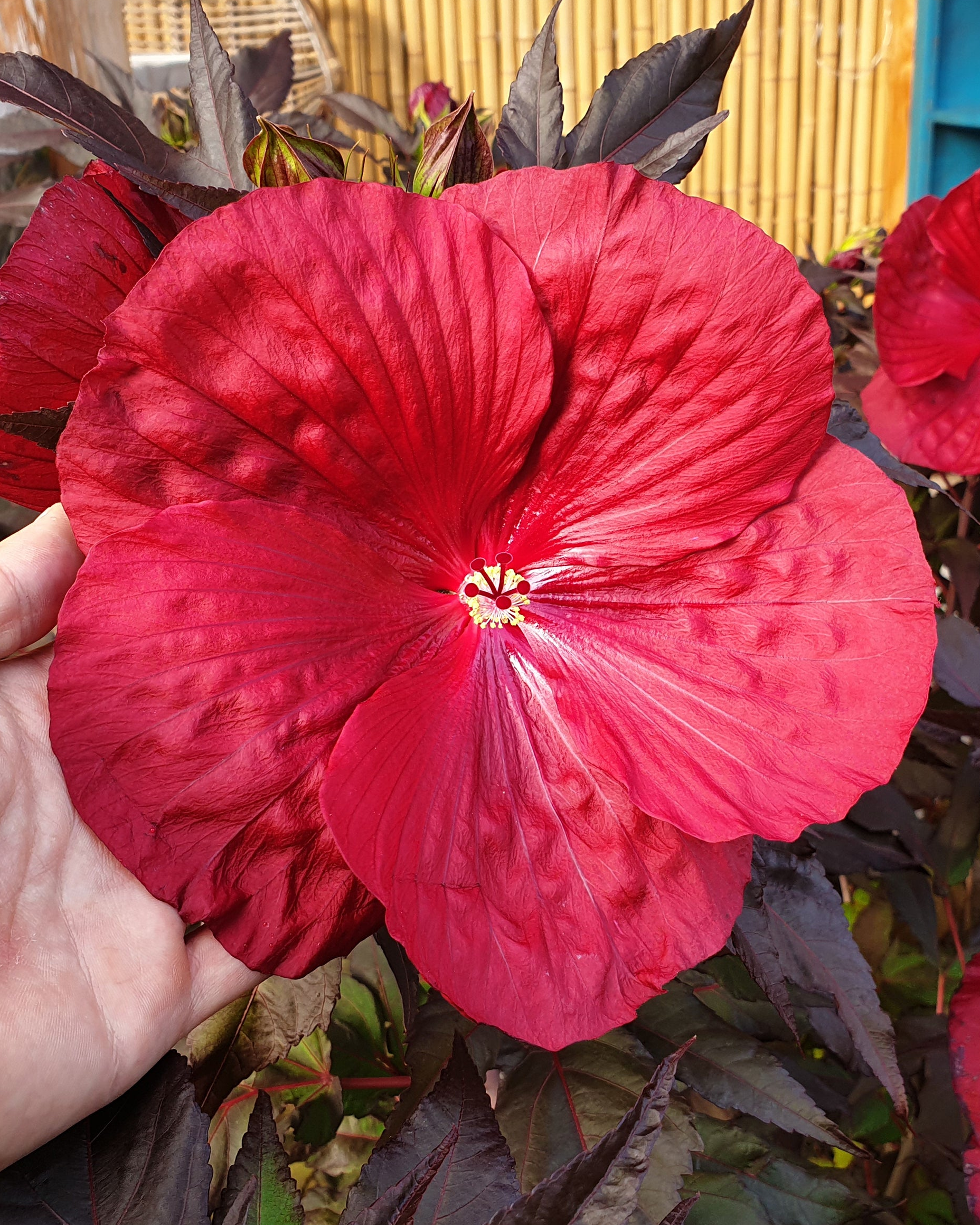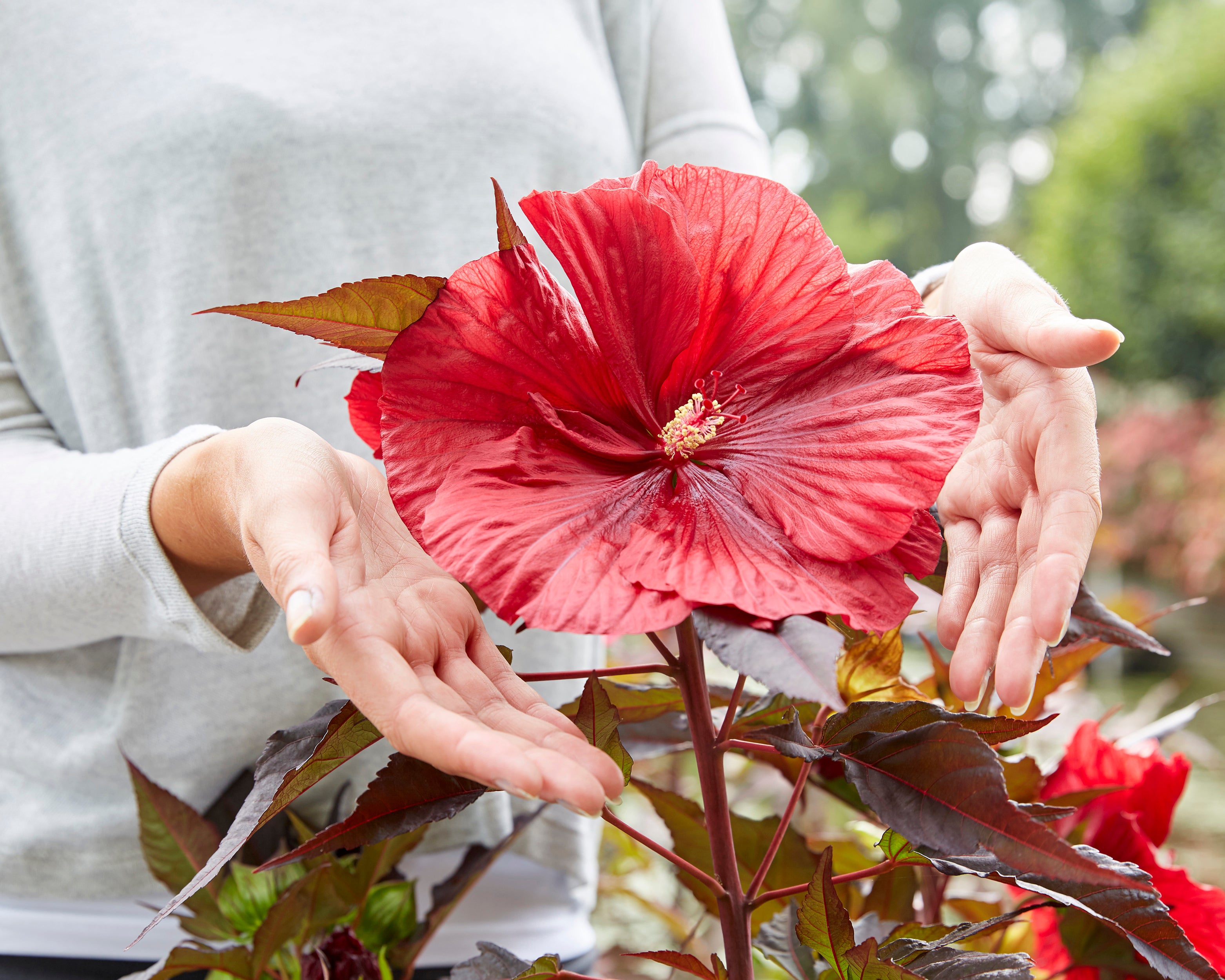 Hibiscus 'Carousel Geant Red' doesn’t do subtle—it’s all drama, glamour and tropical flair, right here in a temperate garden. This hardy rose mallow from the Carousel Series boasts deeply cut, dark green foliage that forms a dense, bushy clump, providing a perfect stage for its magnificent flowers. And what flowers they are—rich, velvety red blooms up to an astonishing 18cm across, unfurling like silken fans through the height of summer. Each blossom looks as though it belongs in an exotic paradise, yet Hibiscus 'Carousel Geant Red' is perfectly content in an ordinary UK border or large patio pot.