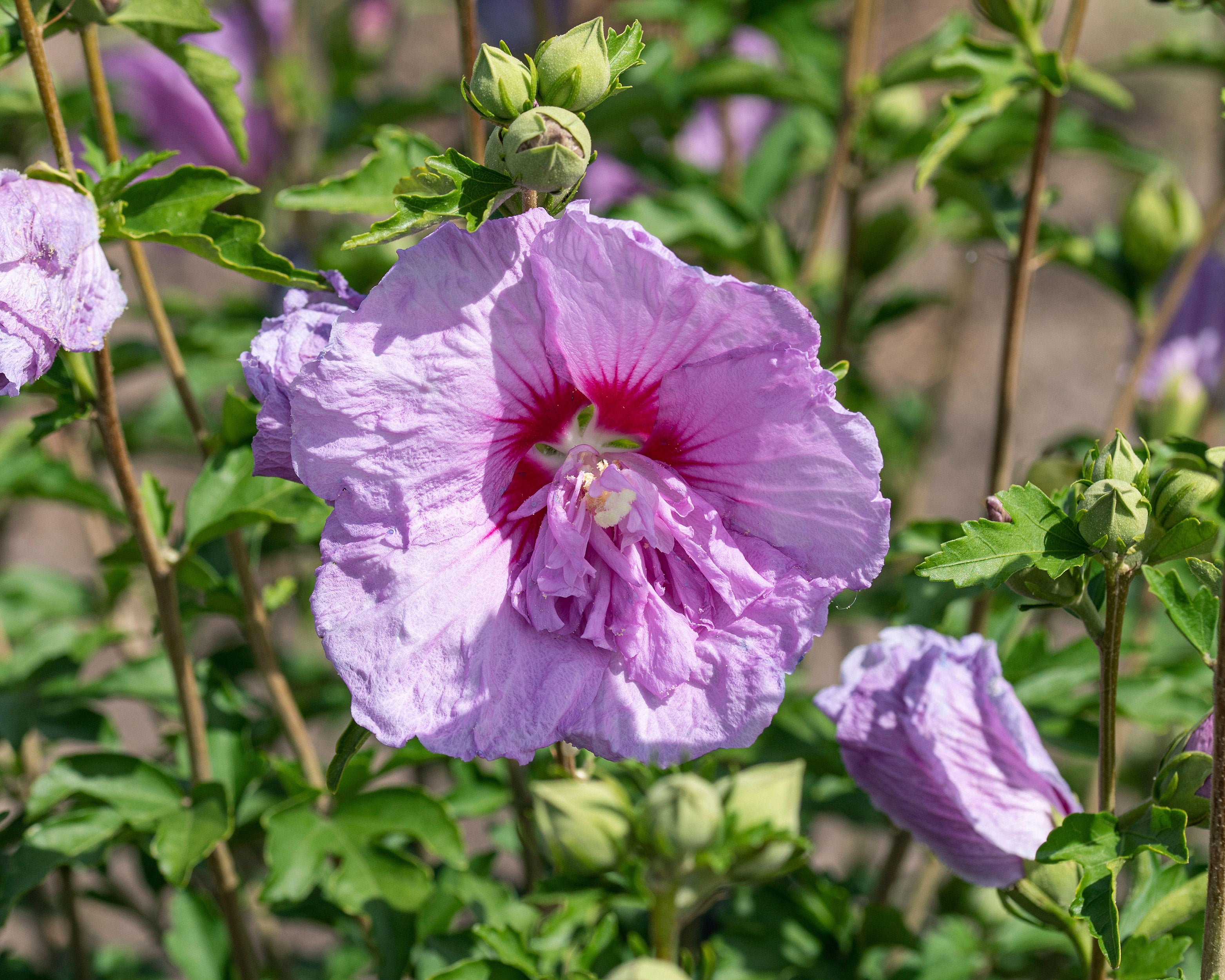 Hibiscus syriacus Lavender Chiffon ('Notwoodone'ᴾᴮᴿ)(Chiffon Series)