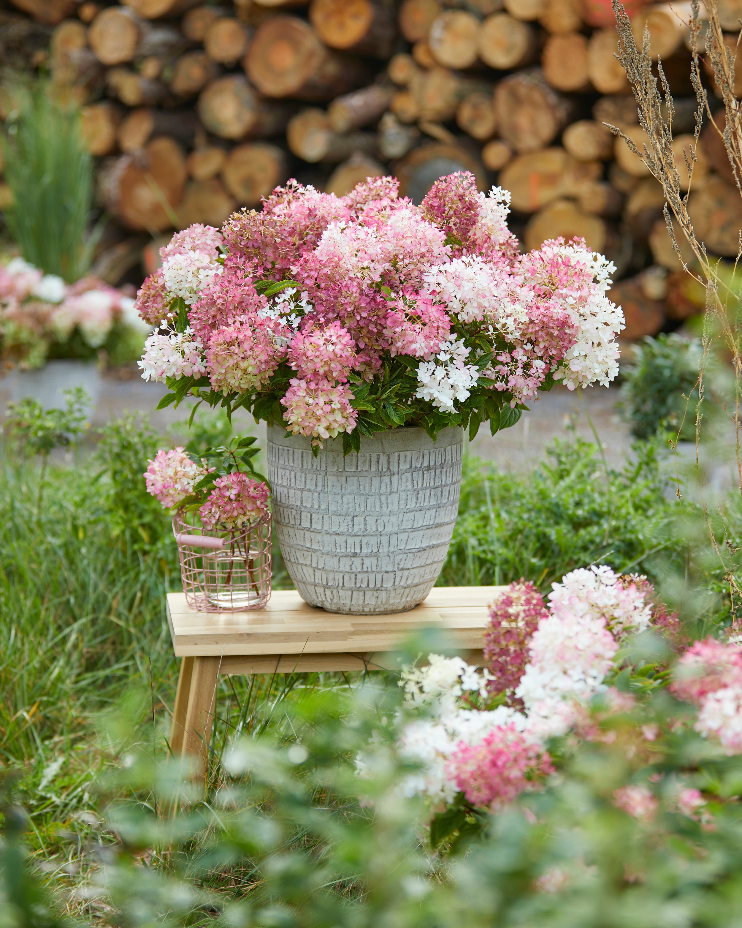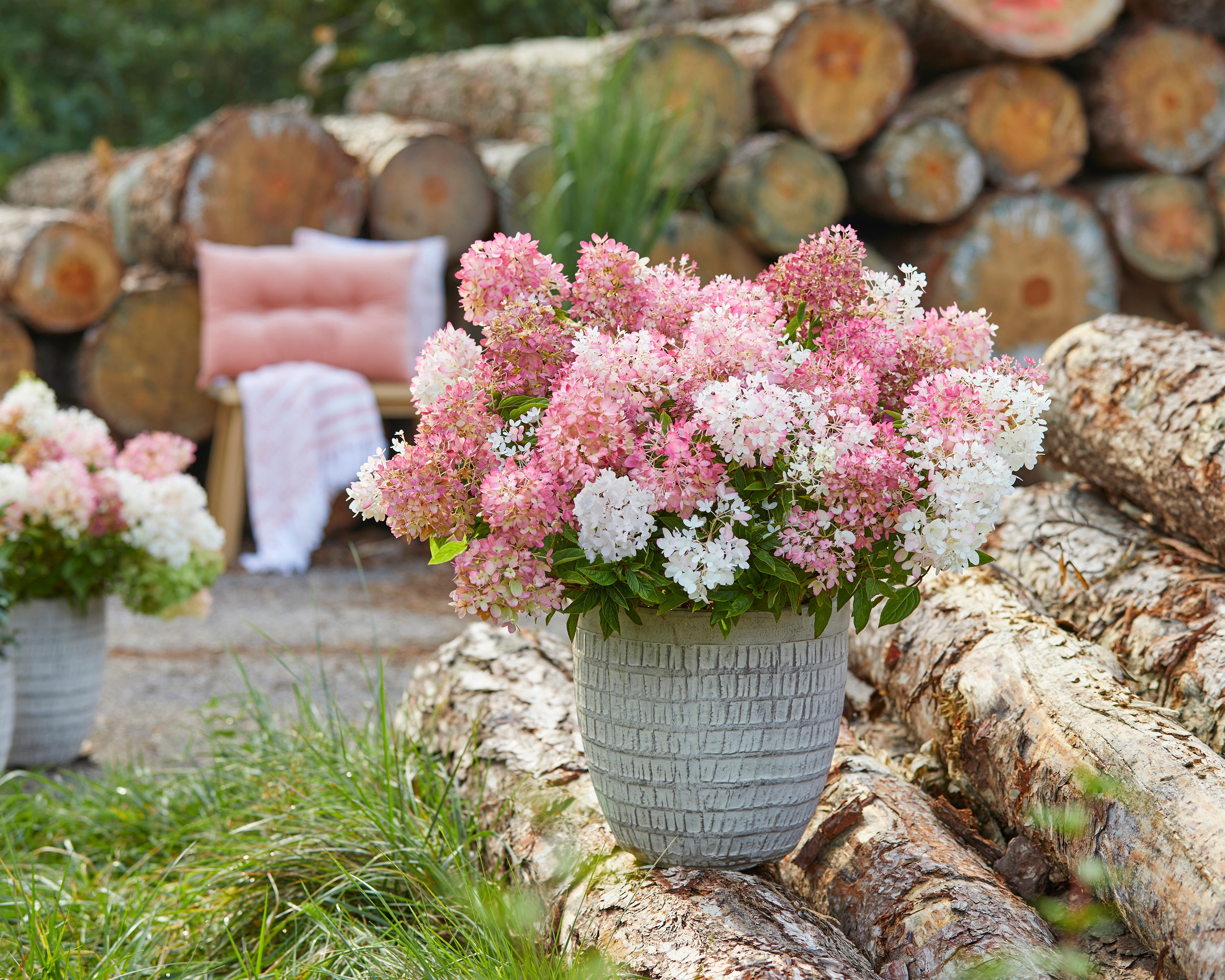 Hydrangea 'Groundbreaker Blush' reimagines the Hydrangea paniculata for modern gardens, offering a compact, low-growing habit that spreads more in width than height. Reaching just 30-40 cm tall, Hydrangea 'Groundbreaker Blush' is perfect for creating a soft carpet of blooms across borders, patios, or garden beds. From July through November, its delicate white flowers slowly blush into gentle pinks, transforming any space into a season-long display of subtle colour. The lush, finely branched foliage supports a profusion of blooms, making Hydrangea 'Groundbreaker Blush' a striking ground cover in small gardens or container plantings. Its tidy habit also makes it a charming choice for public green spaces, garden tables, or terrace pots, offering the beauty of a classic hortensia in a much more compact form.