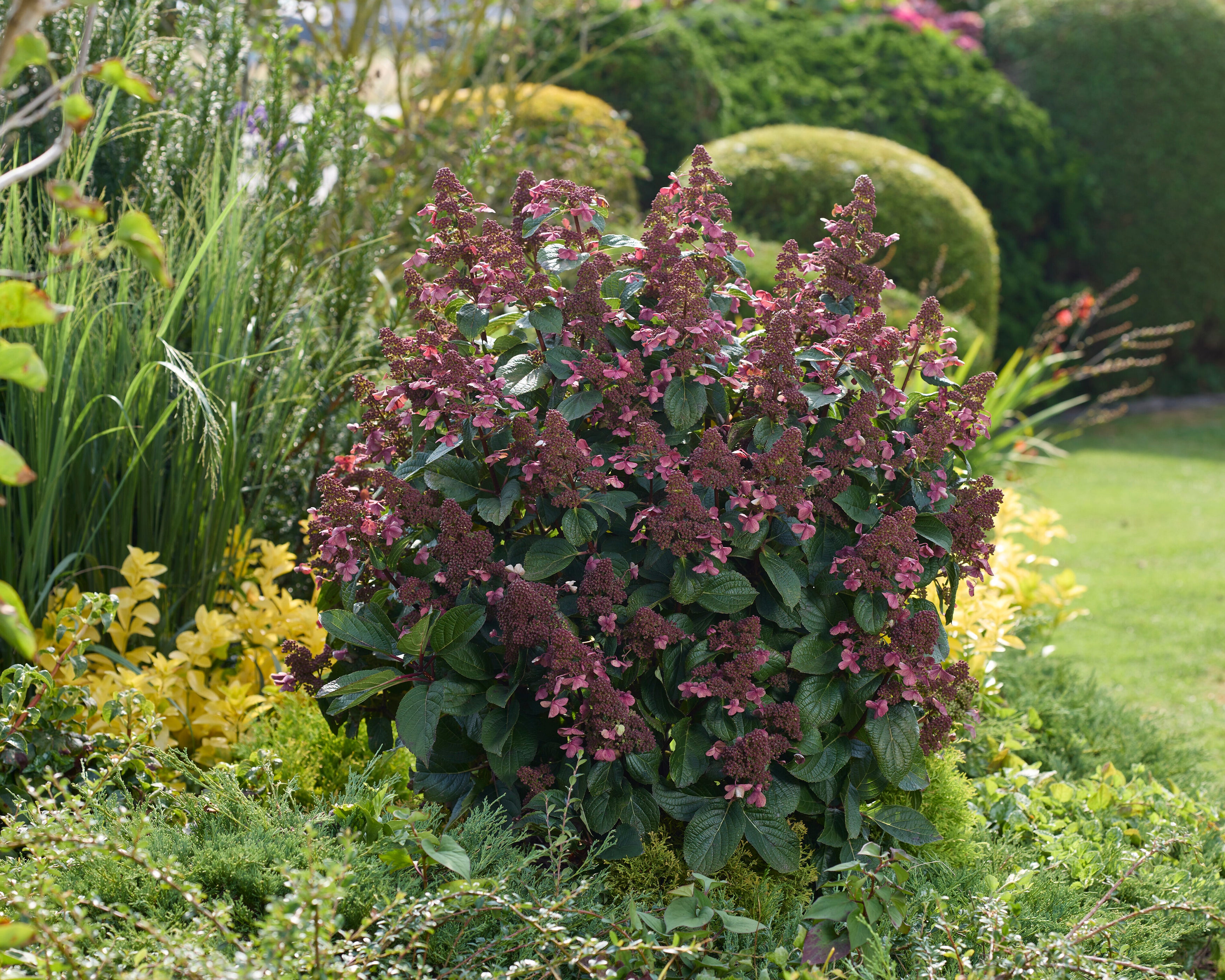 It’s an incredibly reliable, low-maintenance variety that still manages to look like something special. Hydrangea 'Living Infinity' performs beautifully in borders, mixed plantings or large containers, where its ever-changing flower tones create an easy harmony with grasses and late-summer perennials. The sturdy stems keep the flowers upright even after heavy rain, and its tidy habit means no sprawling chaos. Plant Hydrangea 'Living Infinity' in sun or partial shade, give it a bit of moisture and watch it return year after year—steady, stylish, and quietly spectacular. It’s the botanical equivalent of a timeless piece in your wardrobe—elegant, dependable, and always in season.