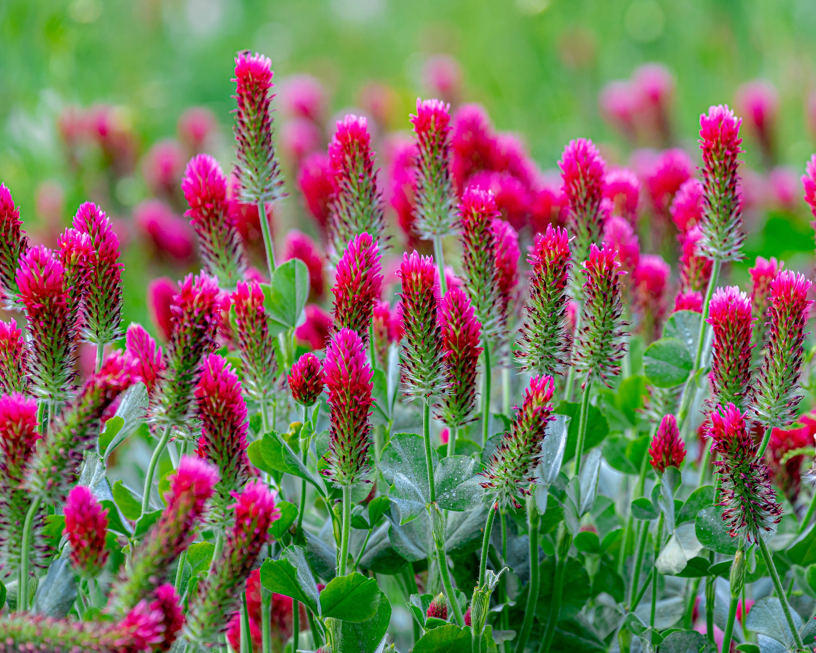 Trifolium rubens is called ruddy clover because its flower spikes blush deep red, as if it’s permanently embarrassed by all the attention.